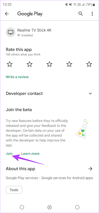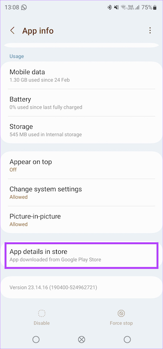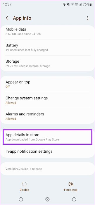 Stap 3: Tik op’App details in store’onderaan de pagina. Hierdoor wordt de Google Play Store-pagina voor de app geopend.
