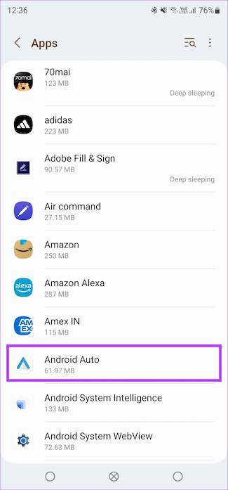 Stap 2: Scroll naar beneden en selecteer Android Auto. Als u uw lijst met apps niet ziet, selecteert u’Alle apps bekijken’en zoekt u naar Android Auto.