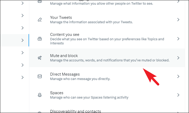 Zoek en klik op de optie’Dempen en blokkeren’.