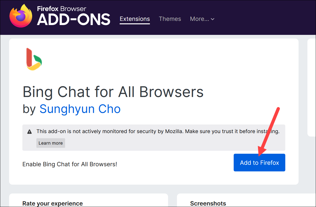 Installeer Bing Chat voor alle browsers Extensie voor Firefox