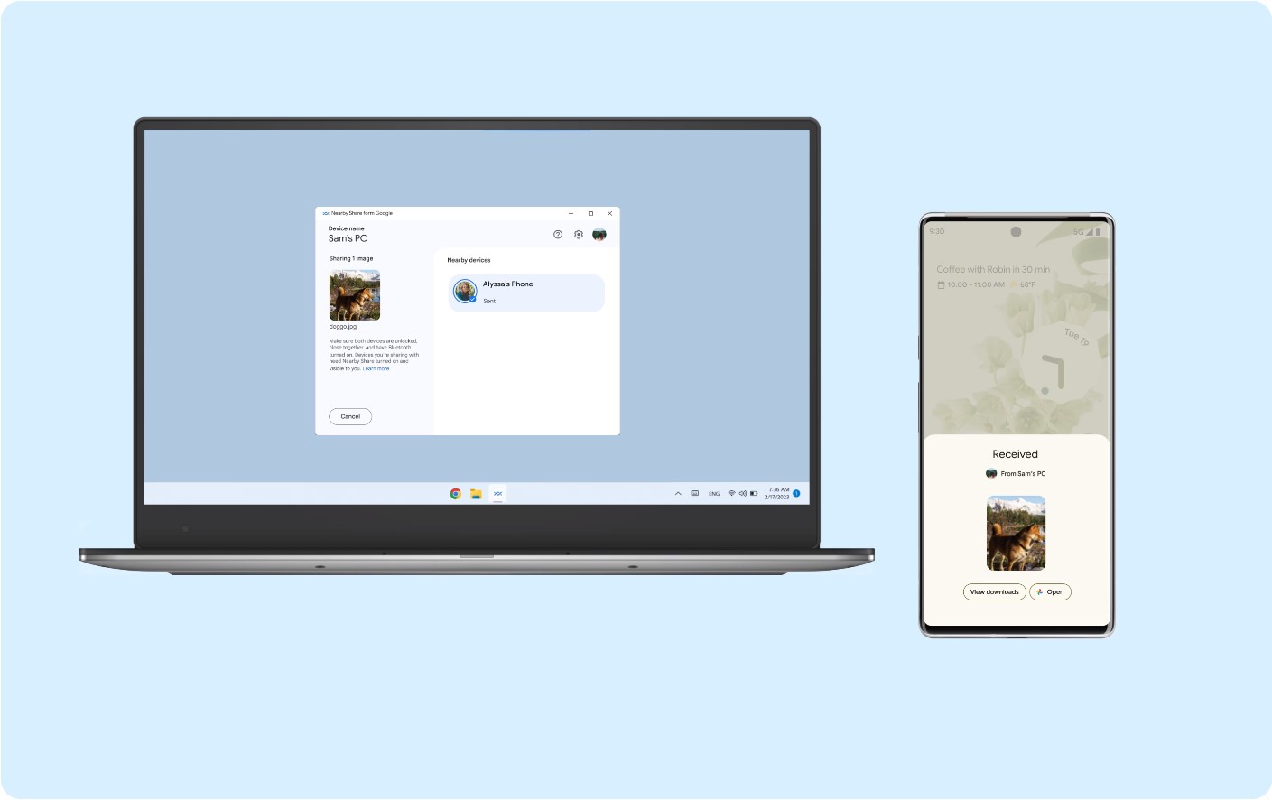 Eerder deze maand opende Google de bètaversie van Android’s Near Share voor Windows OS. Na een week testen is Near Share nu wereldwijd beschikbaar voor Windows en Chrome OS en niet meer beperkt tot de Verenigde Staten. U kunt nu bestanden, foto’s, documenten en berichten van uw mobiel naar uw pc overbrengen en vice versa.