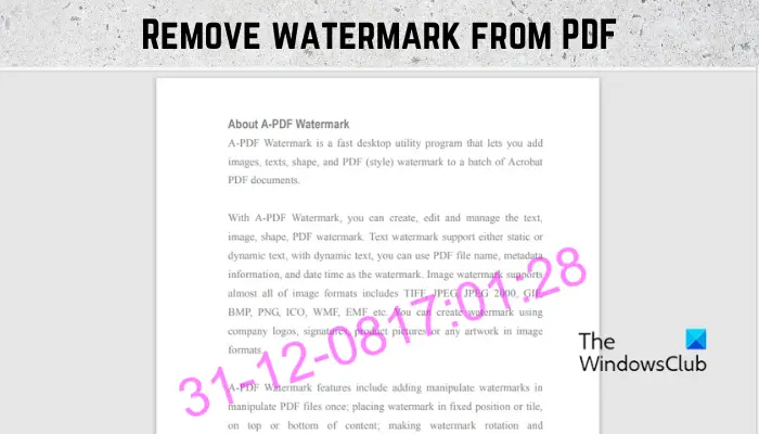 Een watermerk verwijderen uit een PDF-document op uw Windows 11/10 pc, kunt u de onderstaande methoden gebruiken:
