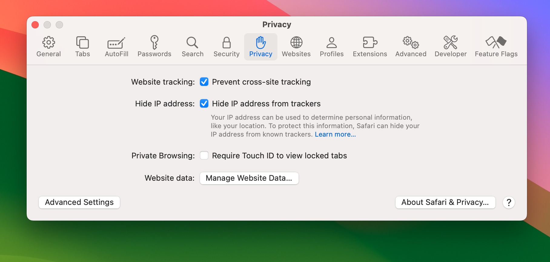 De modus Privénavigatie verwijdert bijvoorbeeld automatisch trackingreeksen uit URL’s in Safari, Berichten en Mail om cross-site tracking verder te verminderen. Bovendien blokkeert de browser volledig het laden van alle bekende trackers op webpagina’s en schakelt het extensies uit wanneer u privé op internet surft.