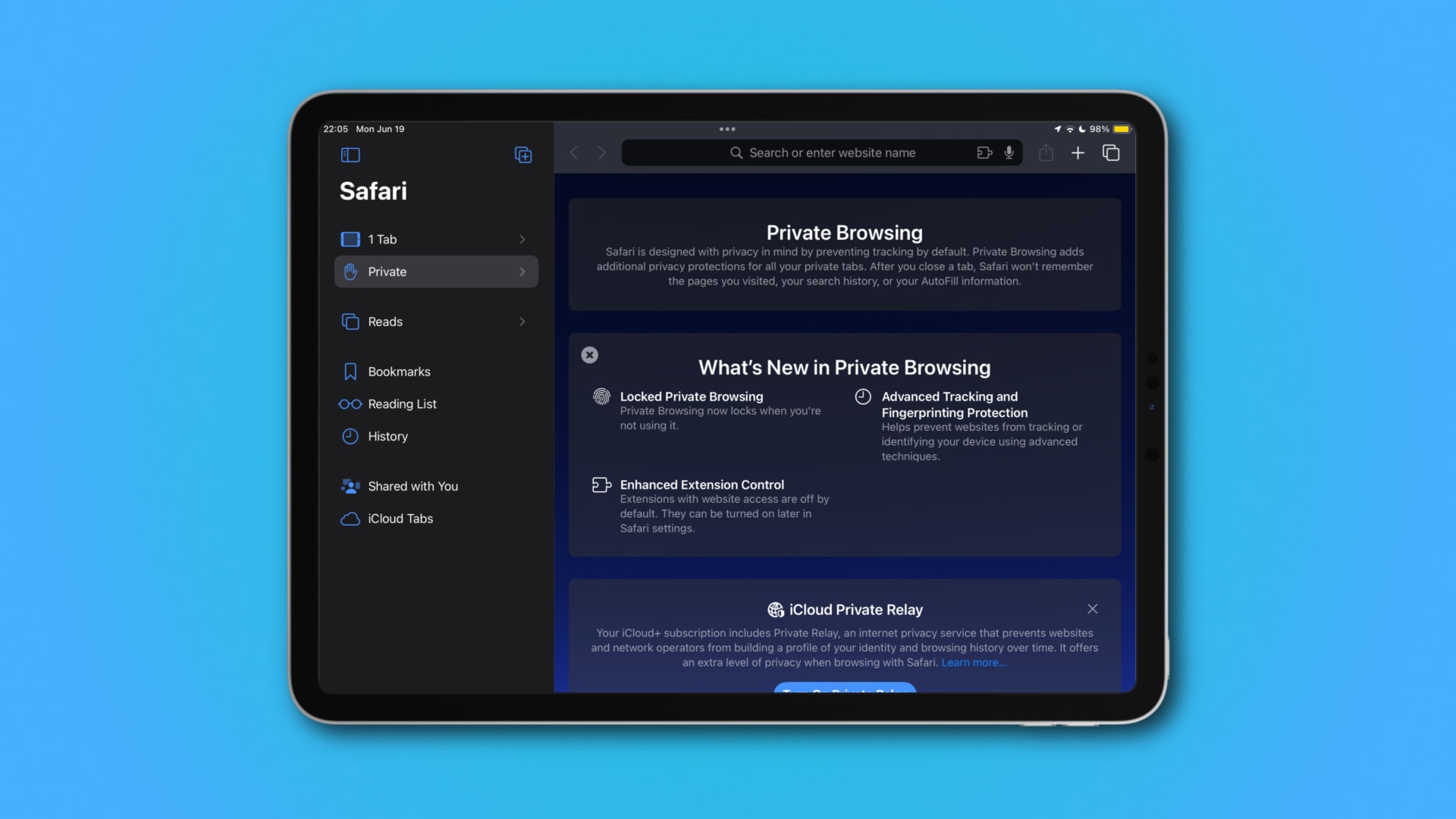 Op iOS 16 en ouder bewaart Safari privétabbladen tussen sessies als de optie om tabbladen open te houden is ingeschakeld. Op iOS 17.0, iPadOS 17.0 en macOS Sonoma of later beschermt Safari automatisch al uw privétabbladen met biometrische authenticatie.