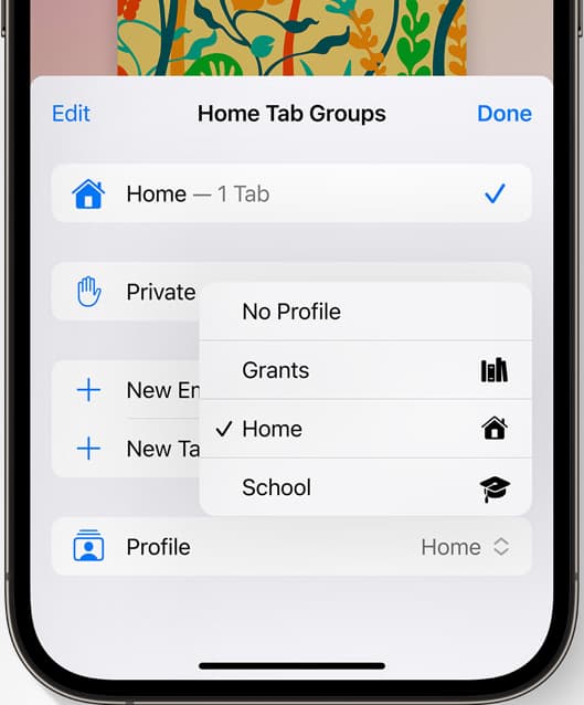 Profielen die u maakt en profielaanpassingen maakt u allemaal gesynchroniseerd via iCloud. Als gevolg hiervan verschijnt een profiel dat u in Safari op Mac hebt gemaakt ook op uw iPhone en iPad met iOS 17 of iPadOS 17 en met dezelfde Apple ID.