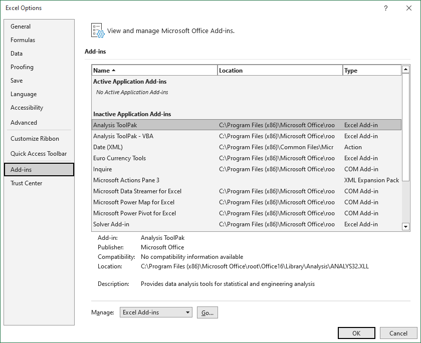 Af en toe kunnen invoegtoepassingen problemen veroorzaken met uw Excel-sheets. Schakel alle invoegtoepassingen uit en schakel ze een voor een weer in om er zeker van te zijn dat ze de glitch”kan geen toegang tot het bestand krijgen”veroorzaken. Om dit te doen: