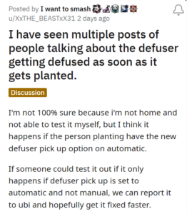 Dit probleem verstoort de core gameplay-ervaring aangezien het aanvallende team sterk afhankelijk is van het plaatsen en beschermen van de Defuser om een strategisch voordeel te behalen.