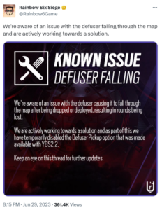 Gelukkig heeft Ubisoft het probleem erkend en actief gewerkt aan een oplossing. Het team heeft ook actie ondernomen door de Defuser uit te schakelen en onderzoeken te starten om de oorzaak van het probleem te achterhalen.