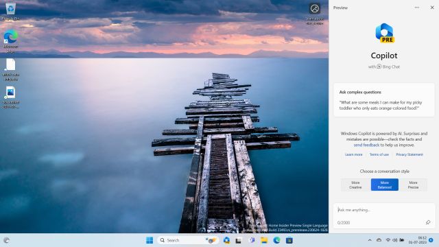 9. Nu zou Windows Copilot goed moeten werken vanaf de taakbalk. U kunt ook op”Windows + C“drukken om Copilot onmiddellijk te openen. Houd er rekening mee dat u een actieve internetverbinding nodig heeft om Copilot te gebruiken.