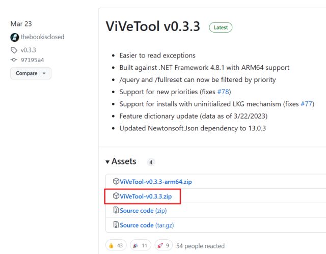 3. Windows Copilot is niet standaard voor alle gebruikers ingeschakeld en slechts een paar hebben de functie standaard ingeschakeld. U hebt dus waarschijnlijk ViVeTool nodig om de verborgen Windows Copilot-functie in te schakelen. Je kunt ViVeTool hier downloaden.