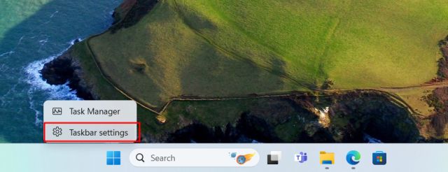2. Zo niet, klik dan met de rechtermuisknop op de taakbalk en open”Taakbalkinstellingen“.