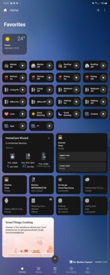 Interfejs użytkownika zaktualizowanej aplikacji SmartThings jest bardziej zgodny z aplikacją SmartThings dla systemu Windows 10. Samsung wypuścił tę aplikację w zeszłym miesiącu wraz z nowymi notebookami Galaxy Book. Nowy interfejs użytkownika dzieli aplikację na pięć różnych sekcji: Urządzenia, Ulubione, Życie, Automatyzacja i Menu.
