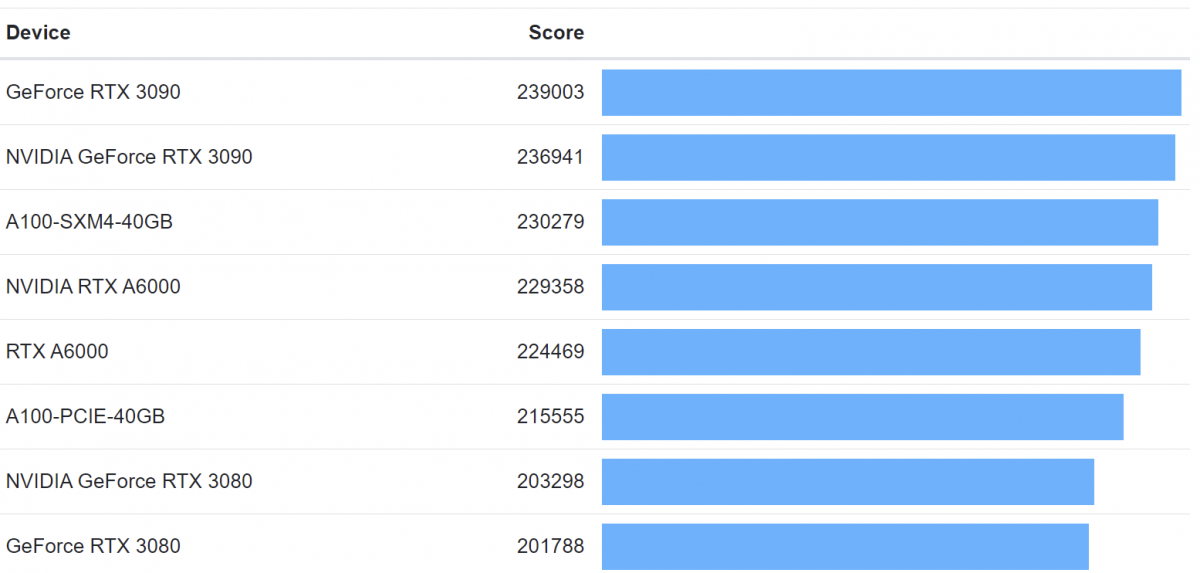 NVIDIA RTX 3080 Ti pokonuje średni wynik Geekbench CUDA dla RTX 3090
