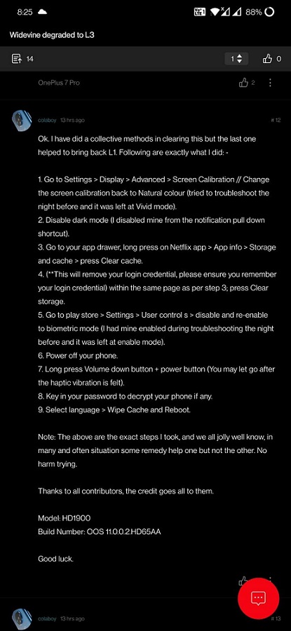 Zgodnie z wieloma raportami społeczności OnePlus, użytkownicy urządzeń z serii OnePlus 7 i 7T mają problem z Widevine spadł do poziomu L3.