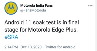 IST 06:25 pm: One of our readers has confirmed that they got the Android 11 update on their Motorola Edge+ in Brazil.