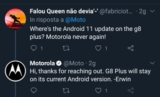 IST 10:15: Odpowiadając na zapytanie użytkownika dotyczące dostępności Androida 11 na Moto G8 Plus, Motorola, za pośrednictwem oficjalnego konta firmy, poinformowała, że urządzenie pozostanie na Androidzie 10.