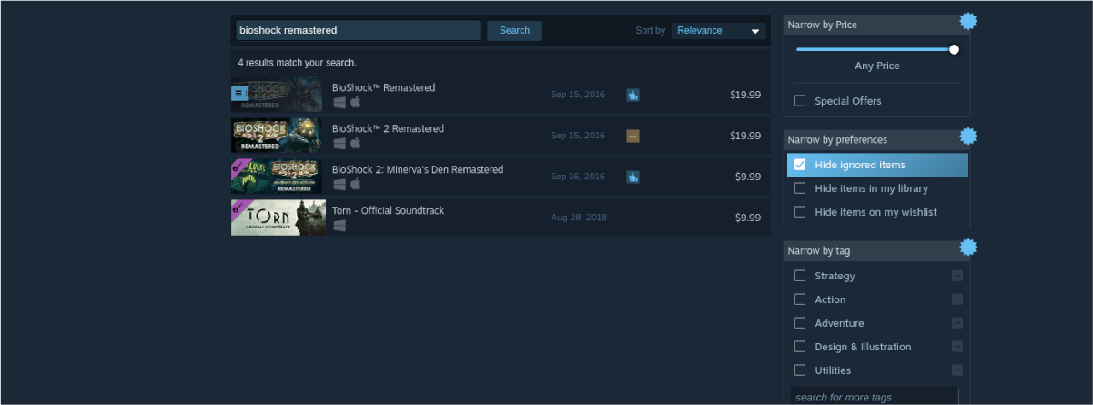 Kliknij „BioShock Remastered” w wynikach wyszukiwania, aby uzyskać dostęp do strony sklepu z grą.