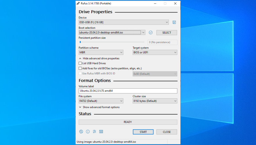 10. Click STARTRufus shows how to create a bootable USB drive with Ubuntu