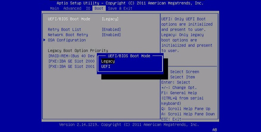 4. Select UEFI/BIOS Boot Mode and press Enter