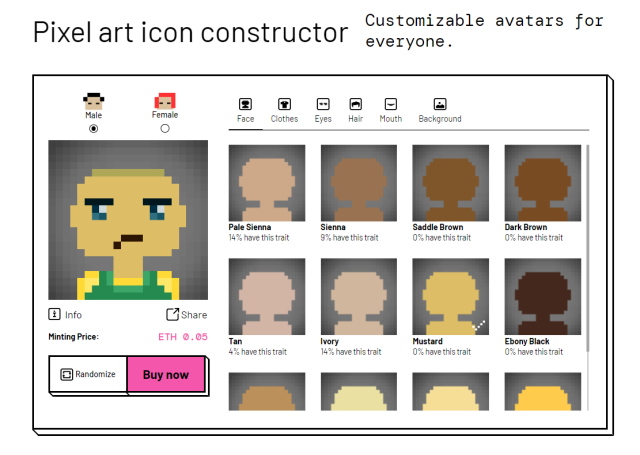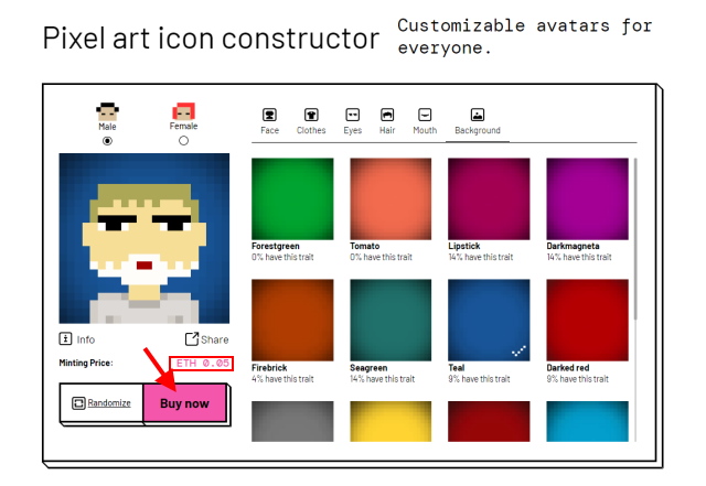 Będziesz nawet mógł mieszać i dopasowywać cechy z innych kolekcji NFT, które pokochałeś. Trzeba przyznać, że wyświetlane awatary NFT wyglądają bardzo fajnie. Jeśli więc 8biticon nie jest w Twoim stylu, poczekaj na ten lub poszukaj jeszcze więcej.