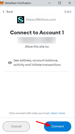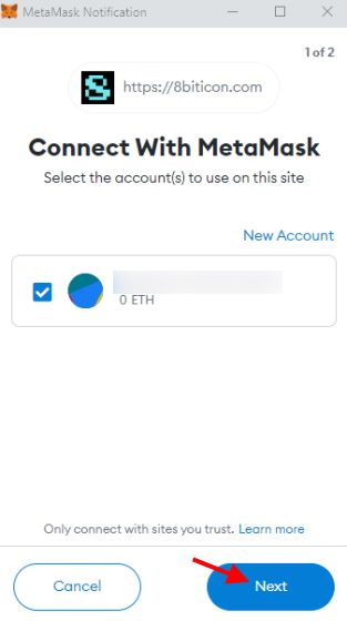 5. Otworzy się wyskakujące okienko z prośbą o połączenie portfela cyfrowego ze stroną internetową. Kliknij przycisk Dalej, aby kontynuować.