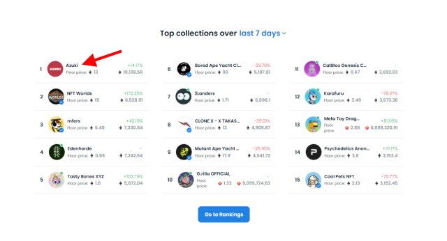 2. Wyszukaj wybraną kolekcję awatarów NFT, a następnie ją kliknij. Jeśli jest wystarczająco popularna, zobaczysz również zaznaczone w najlepszych kolekcjach.