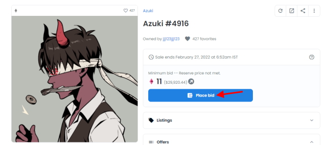 6. W przypadku tego awatara widać, że trwa aukcja. Możesz łatwo złożyć swoją ofertę, aby otrzymać ten awatar, klikając przycisk Złóż ofertę. Upewnij się jednak, że zweryfikowałeś cenę, ponieważ jest to dość drogie.