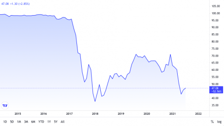 Cena zasobu cyfrowego osiągnęła teraz tę samą cenę, co moneta początek roku 2021. Pokazuje, że ten spadek może trwać dalej niż przewiduje rynek.
