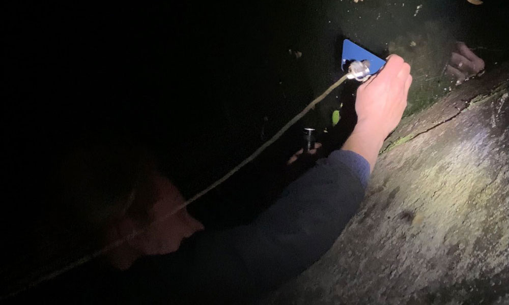 Zasadniczo Riedel wziął normalną wędkę i żyłkę, przyczepił magnes do końca, a następnie zaczął pogłębiać dno kanału, aż jego iPhone wyskoczył z błota.
