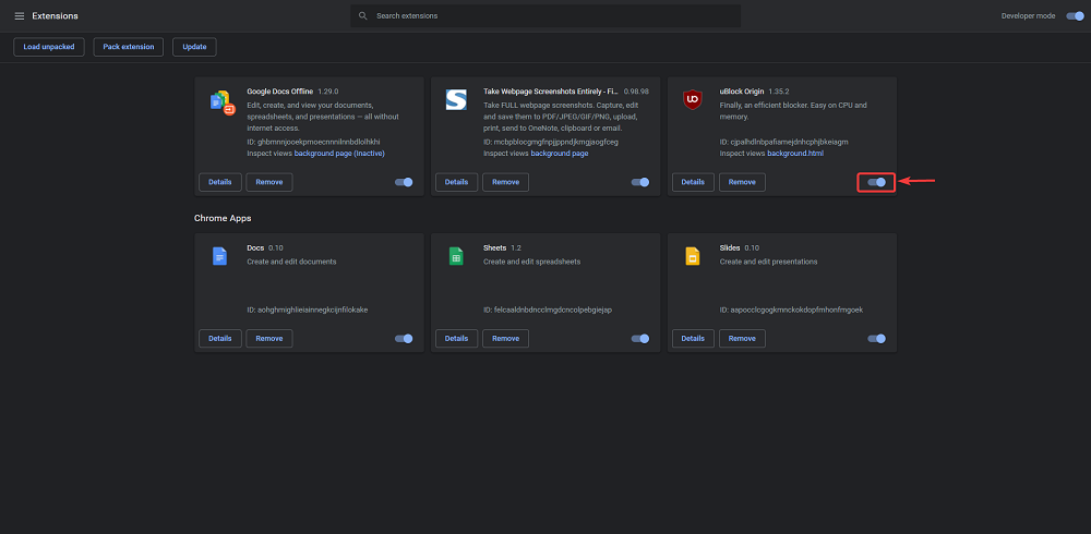 3. Usuń zaznaczenie opcji włączania obok modułu blokowania reklam.