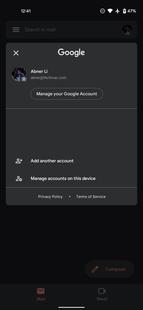 Abner Li z firmy 9to5Google opublikował artykuł w tym tygodniu prezentujemy nowy przełącznik zdjęć profilowych w Gmailu na Androida, który umożliwia użytkownikom zamianę obrazu konta bezpośrednio z aplikacji zamiast otwierania pełnej strony ustawień konta Google w internecie. Chociaż ten skrót jest przydatny, nie jest jeszcze dostępny we wszystkich aplikacjach Google i uważam, że firma może zrobić lepiej, aby zapewnić użytkownikom bardziej naturalne sposoby zmiany danych na Chromebookach.
