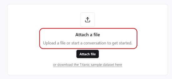 2. Kliknij „Utwórz nowy czat”, a następnie kliknij „Załącz plik”, aby przesłać dane w formacie pliku CSV.