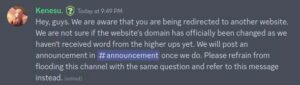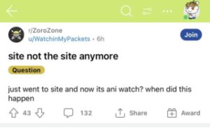 Ponadto wiadomość, która wydaje się pochodzić od członka społeczności Zoro. Stwierdza, że nie jest jasne, dlaczego witryna przekierowuje do nowej domeny lub czy zmieniła się na Aniwatch.