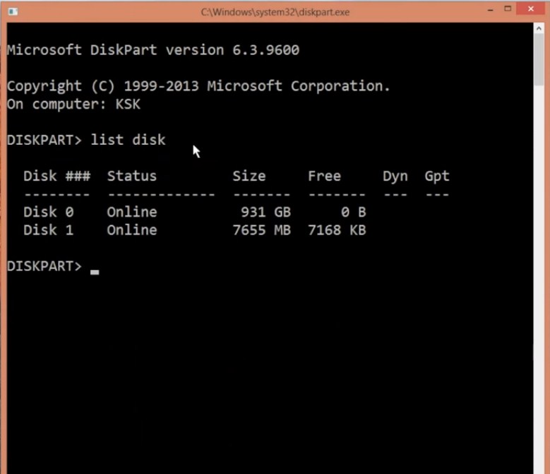 4. Teraz wpisz select disk numer_dysku (dla ex-select disk 1) i naciśnij enter.