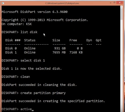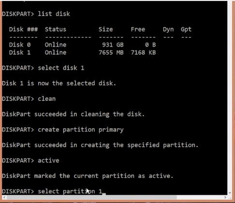 8. Następnie wprowadź polecenie wybierz partycję 1.