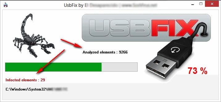 3. Poczekaj kilka minut lub sekund, aż narzędzie zakończy skanowanie. Jeśli USBFix znajdzie jakiś problem, naprawi go za Ciebie.