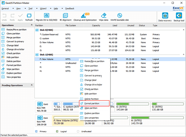 Wykonaj to tylko wtedy, gdy metoda CMD wyświetli błąd podczas formatowania partycji dysku. Ta metoda przydała się, gdy system Windows nie był w stanie dokończyć formatowania. W tej metodzie użyjemy EaseUS Partition Master do całkowitego sformatowania karty SD. Warto jednak zauważyć, że ta metoda usunie wszystkie pliki zapisane na karcie SD.