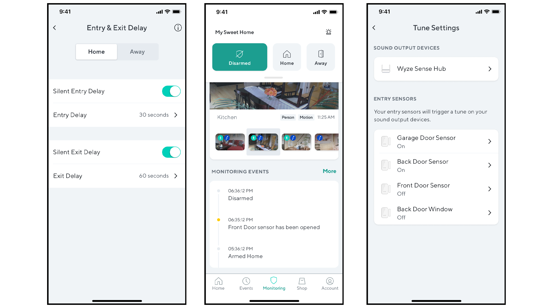 Na koniec, aplikacja Wyze będzie teraz wyświetlać zdarzenia czujników i alarmów w Zdarzeniach monitorowania szkło. Ułatwia to przeglądanie pełnej historii systemu zabezpieczeń, niezależnie od tego, czy jest on ustawiony w trybie W domu, czy Poza domem.