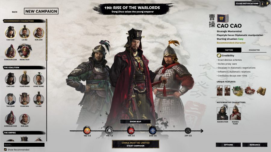 Po drugie, nazywanie Trzech Królestw kompletnymi, gdy nie mamy punktu początkowego kampanii w rzeczywistym okresie Trzech Królestw, tj. Walczących stanów Wei, Shu i Wu, wydaje się trochę dziwne. Nie wspominając o innych postaciach i wydarzeniach, które wielu uważa za istotne aspekty powieści, których wciąż brakuje w grze.
