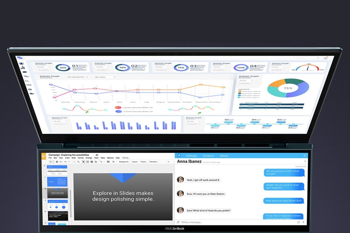 Естественно, именно здесь наш обзор был начать. С Asus ZenBook Duo вы получаете больше места на экране, чем вам действительно нужно. Apple MacBook Air с 13-дюймовым экраном служит моей повседневной рабочей машиной, а раскладка клавиатуры столь же традиционна, как и на ноутбуках. С ZenBook Duo пришлось переназначать всю мою мышечную память (вместе с переключателем macOS-Windows), но меня все еще интересовало то, что мне не нужно было переключать вкладки каждые несколько секунд.