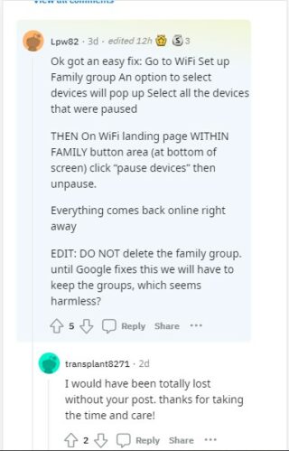 Другой предлагаемый обходной путь заключается в переходе на более старую версию приложения Google WiFi, поскольку, как сообщается, эта ошибка не затрагивает его. Пока неясно, приносят ли облегчение предыдущие выпуски приложения Google Home.