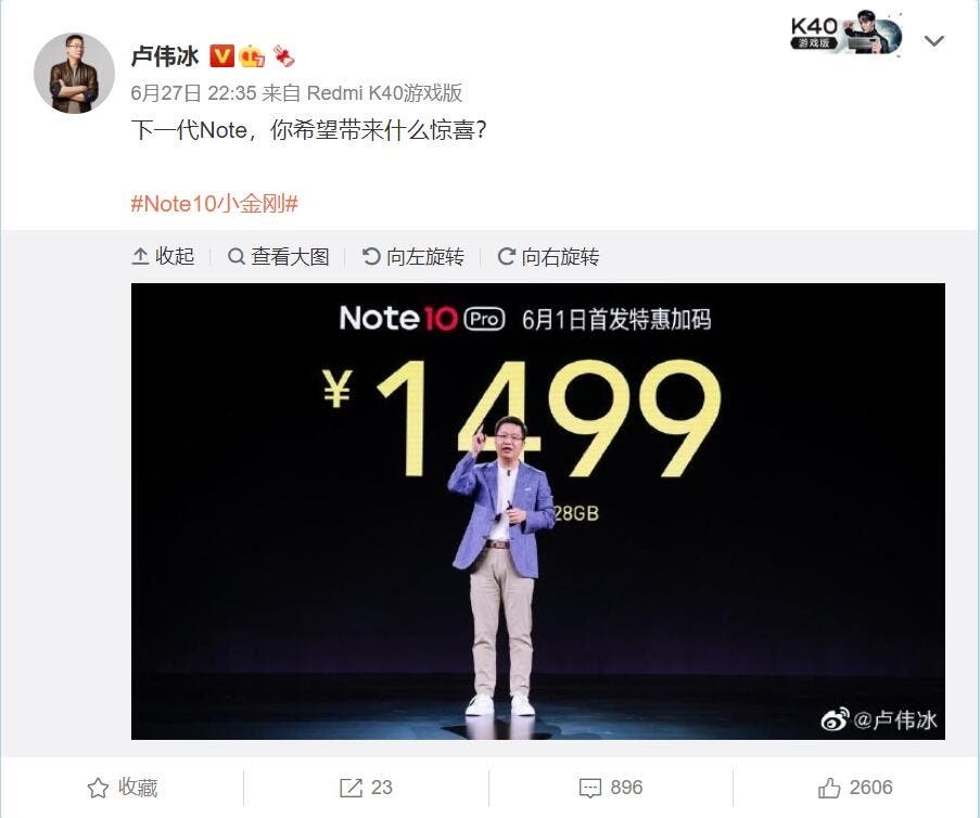 китайский производитель, Xiaomi , много работает над своим суббрендом Redmi. Redmi Note 10 series-это последняя серия компании, но пользователи уже ждут преемника, серии Redmi Note 11. Первые продажи серии Redmi Note 10 состоялись на китайских 618 продажах. Эта серия смартфонов имеет стартовую цену 999 юаней (155 долларов США), что является очень конкурентоспособным. Вчера Лу Вейбинг, президент Xiaomi Group China и генеральный директор бренда Redmi, опубликовал пост, в котором обсуждались новые продукты серии Note следующего поколения. Он спросил пользователей сети, какие сюрпризы они хотели бы увидеть.