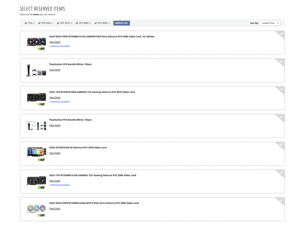 Newegg Shuffle คือที่ที่ลูกค้าจะได้รับโอกาสในการซื้อผลิตภัณฑ์ที่หาได้ยากในตลาดปัจจุบัน GPU เป็นหนึ่งในนั้น Newegg มีรายชื่อ NVIDIA GeForce RTX ที่ออกแบบเองหลายตัวสำหรับการสับเปลี่ยนในปัจจุบัน โดยส่วนตัวแล้วการ์ดที่ฉันต้องการจากการสับเปลี่ยนในวันนี้คือ ASUS ROG Strix GeForce RTX 3090 สีขาวเนื่องจากเป็นการ์ดกราฟิกที่ดูดีที่สุดและเป็นที่ต้องการมากที่สุดตัวหนึ่งของฉัน