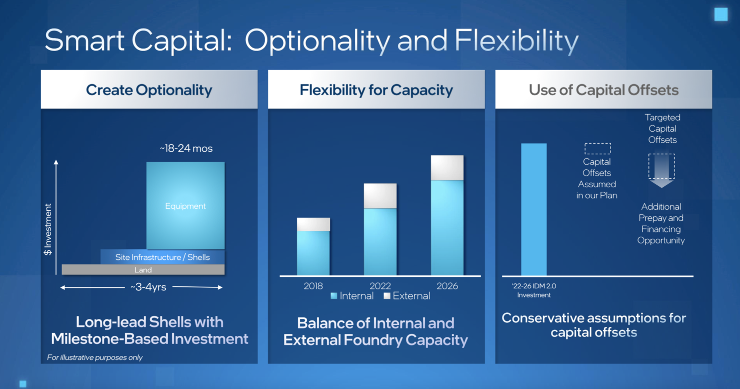 นาย Keyvan Esfarjani ประธานเจ้าหน้าที่ฝ่ายปฏิบัติการระดับโลกของ Intel ได้อธิบายรายละเอียดเกี่ยวกับกลยุทธ์การลงทุนของบริษัทในวันนักลงทุนที่จัดขึ้นเมื่อเดือนที่แล้ว เขาอธิบายว่า Intel กำลังดำเนินการตามแนวทางที่สร้างสมดุลให้กับสถานการณ์”ทั้งหมดหรือไม่มีเลย”ที่ Morgan Stanley ร่างไว้ ตามที่ Mr. Esfarjani ได้กล่าวไว้ สิ่งนี้จะช่วยให้มั่นใจได้ว่า Intel จะนำกำลังการผลิตมาสู่ระบบออนไลน์เมื่อความต้องการต้องการเท่านั้น และไม่ช้าก็เร็ว