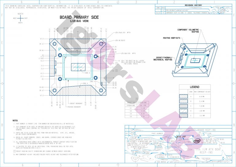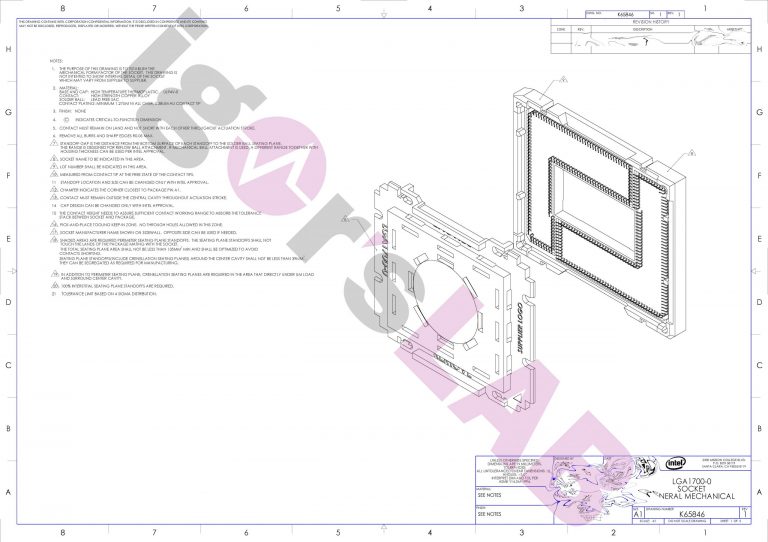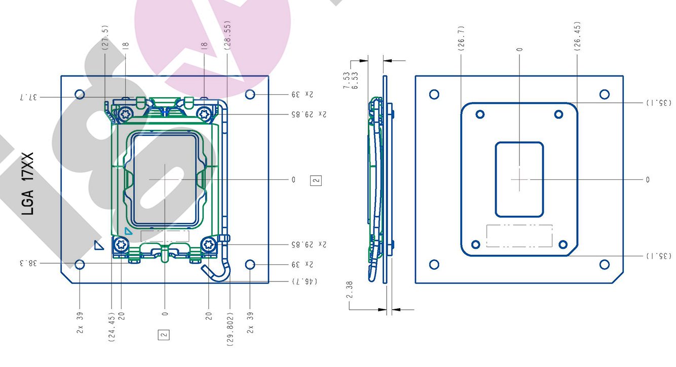 ก่อนอื่น การรั่วไหลของ Igor ได้รับการยืนยันในที่สุด รูปร่างของ CPU ที่ติดตั้งอยู่ในซ็อกเก็ต จนถึงตอนนี้ รูปทรงสี่เหลี่ยมผืนผ้ายังพบเห็นได้เฉพาะในภาพถ่ายช่วงแรกๆ ของตัวอย่างทางวิศวกรรมที่เรารั่วไหลไปเมื่อปีที่แล้ว ไดอะแกรมที่รั่วไหลใหม่ยังแสดงการออกแบบนี้ด้วย ที่สำคัญกว่านั้น Igor เปิดเผยขนาดที่แน่นอนของซ็อกเก็ต รวมถึงรูปแบบรูระบายความร้อนแบบใหม่ ในขณะที่ Igor ได้แชร์สไลด์ที่มี Socket V0 แล้ว คราวนี้เขาได้เพิ่มตารางที่มีขนาดรูซ็อกเก็ต ดูเหมือนว่า Intel กำลังจะเลิกใช้ รูปแบบรู 75×75 มม. เป็น 78×78 ซึ่งจะทำให้ตัวระบายความร้อนบางตัวเข้ากันไม่ได้ โดยเฉพาะอย่างยิ่งเนื่องจากความร้อนในตัวของ Alder Lake ตอนนี้สามารถติดตั้ง spreader ให้ต่ำลงเล็กน้อย (6.5 มม. เทียบกับ 7.3 มม.)