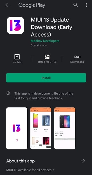 An app has recently surfaced on the Google Play Store named MIUI 13 Update Download. Please note that this is not an official Xiaomi app and as such, it is fake.