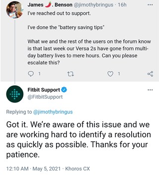 Dù là trường hợp nào, người dùng cũng nên tìm thấy niềm an ủi khi biết rằng bộ phận hỗ trợ của Fitbit đã xác nhận rằng công ty đã biết về vấn đề tiêu hao pin trên Versa và Versa 2.