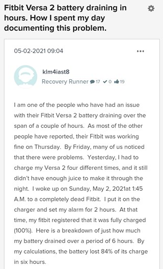 Vì vậy, việc nhiều chủ sở hữu đồng hồ Fitbit Versa và Versa 2 khẳng định rằng pin thậm chí không kéo dài vài giờ là điều đáng báo động, ít nhất là.
