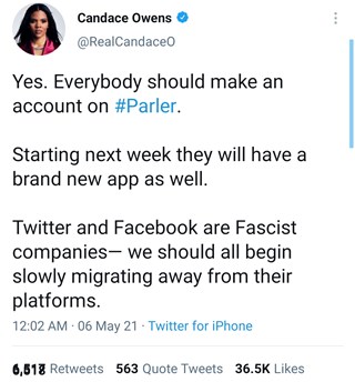 Mặc dù rõ ràng rằng ứng dụng và trang web của Parler đang ngừng hoạt động do bảo trì, nhưng thông tin đến từ Candace Owens cho thấy rằng Parler sẽ có một ứng dụng hoàn toàn mới vào tuần tới.