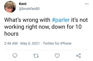 Parler đã tắt, không hoạt động, Twitter đã cấm tôi. Tôi không thích FB ( Nguồn )